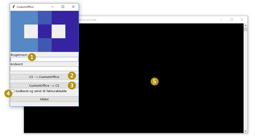 Da C5 er et ældre Windows program, så er man nød til at lave en overførsel af de indsamlede data fra CustomOffice til C5 manuelt. Det samme gælder når man har lavet en ændring i C5 og gerne vil have den over i CustomOffice.