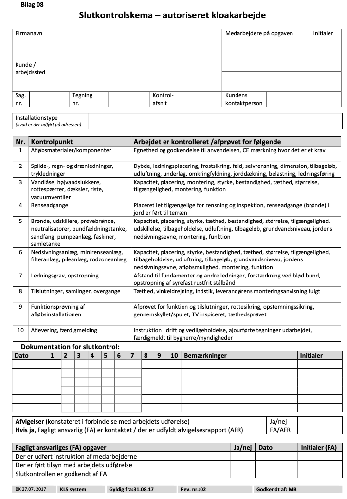 Bilag: Et Slutkontrolskema ser således ud i praksis: