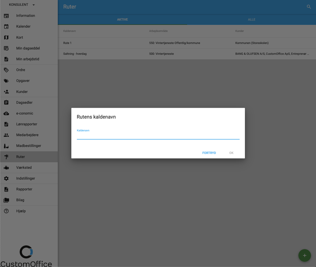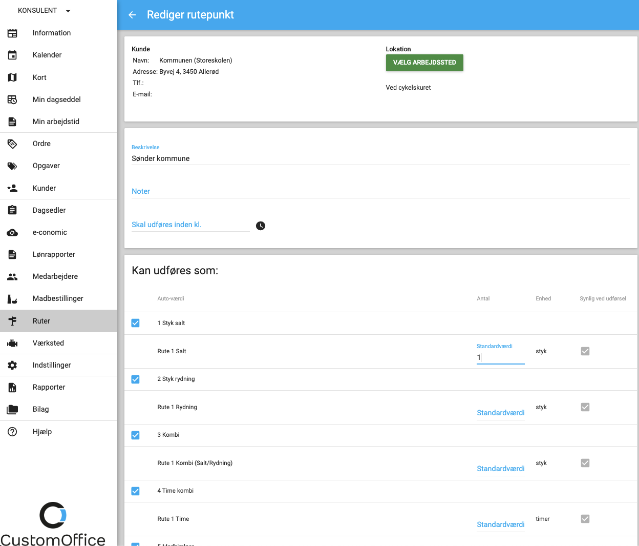 BEMÆRK: Når ruterne oprettes kræves det, at man har ét arbejdssted gemt på kunderne.