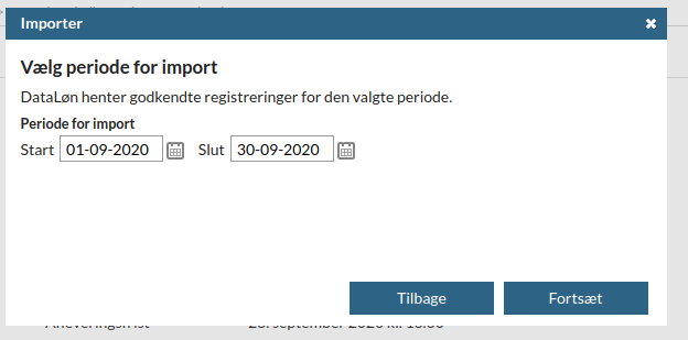 5) Hvis lønperioden fx er fra d. 21/08 til d. 20/09, så er det slutdatoen (d. 20/09), som er perioden for import. Så nedenstående ville virke, fordi d. 20/09 er imellem de to datoer.