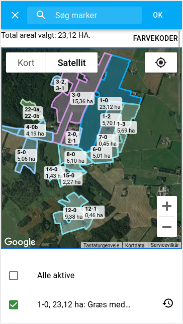 Så er markerne tilgengængelige på kortet (klik på øverste ikon til højre, og vælg laget "mark", hvis ikke de er der)